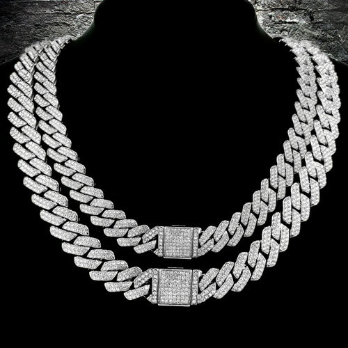 14mm Hip Hop Cuban Link Chain For Men Silver Color Iced Out Rhinestone Miami Necklace Choker for Women with Neck Chain Jewelry