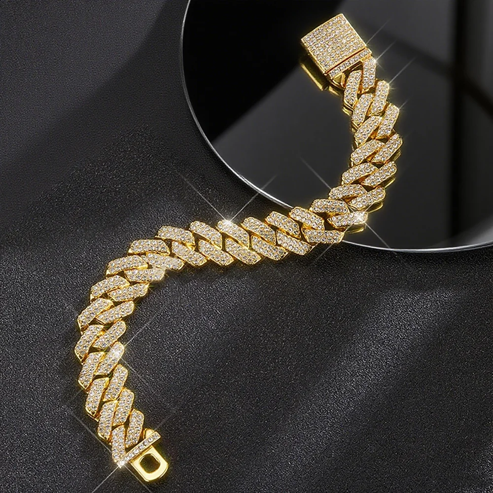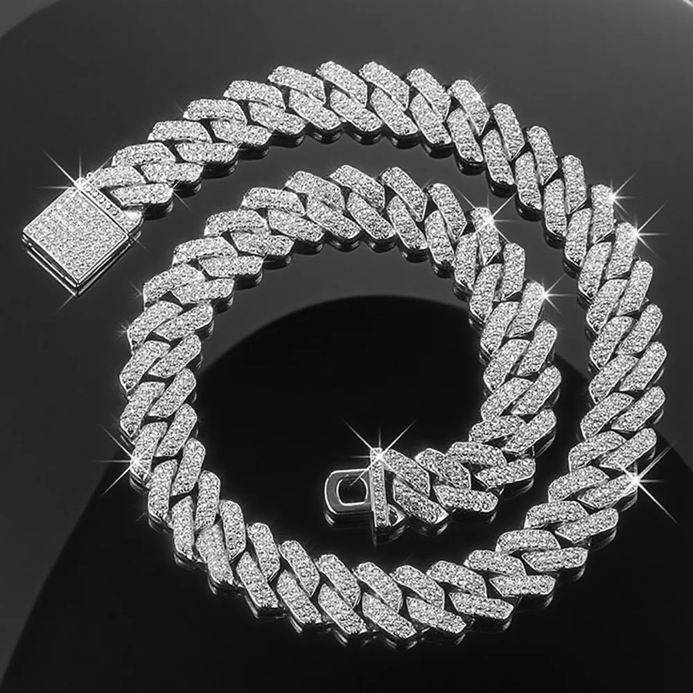 Fashion Hip Hop Square 14MM Cuban Link Necklace Men Gold Color Women Rhinestone Iced Out Cuban Chain Punk Jewelry Necklaces Gift