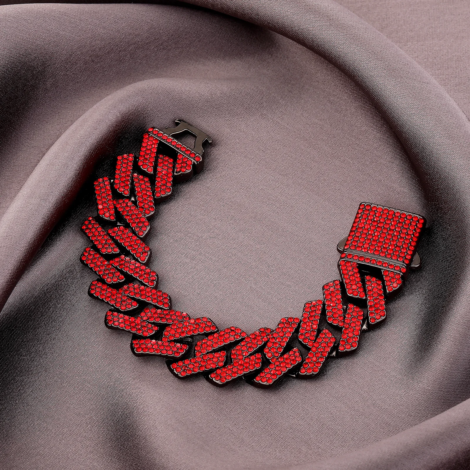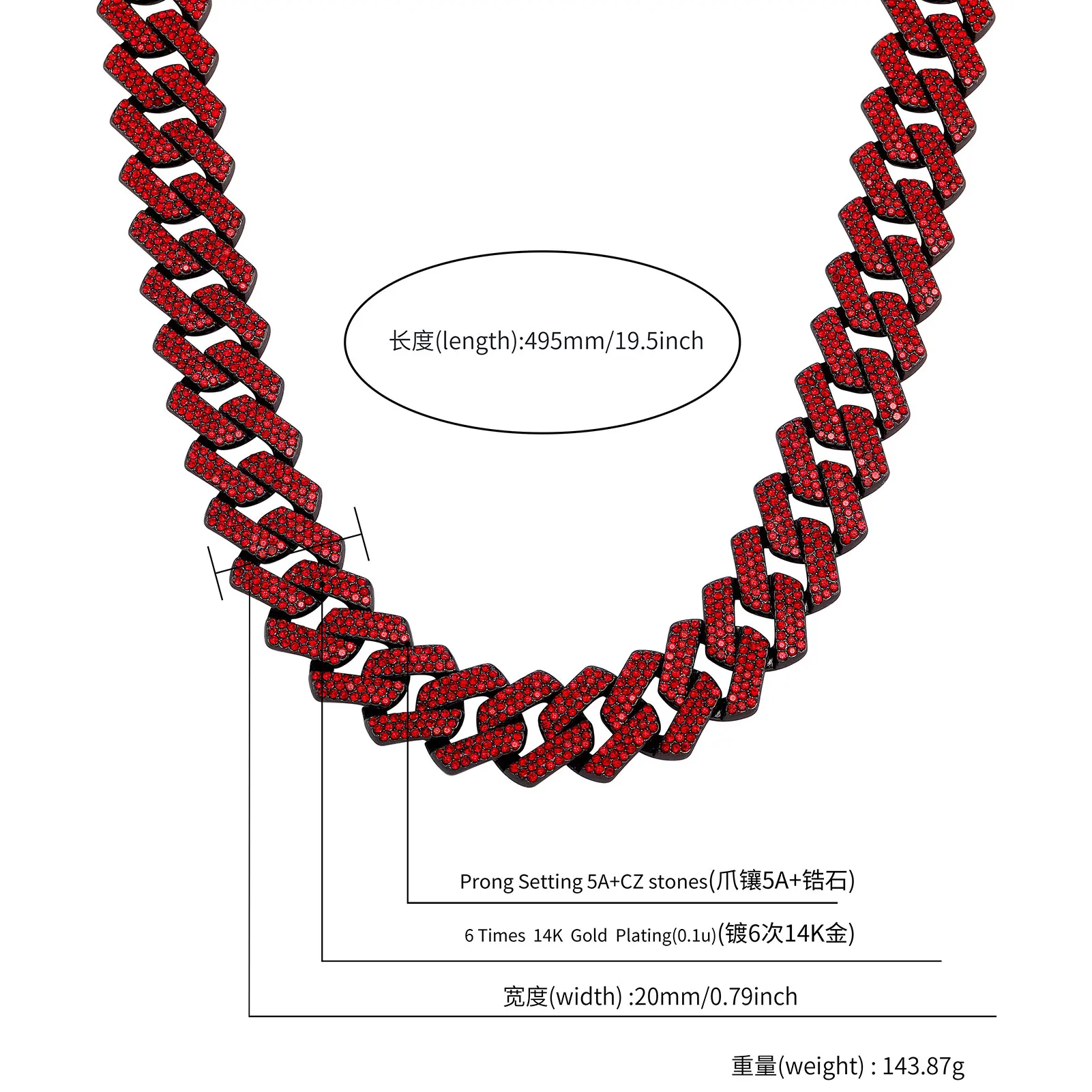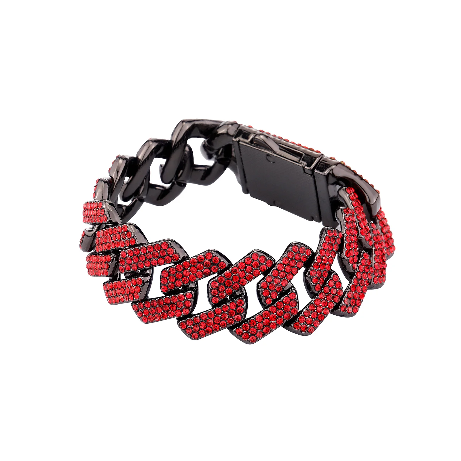 TOPGRILLZ 20MM Alloy Miami Cuban Chain Necklace/Bracelet Set For Men Iced Out Bling Rhinestones Jewelry For Halloween