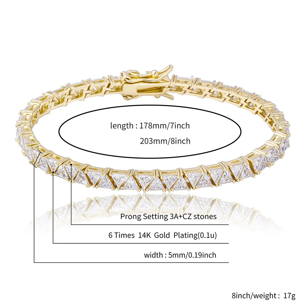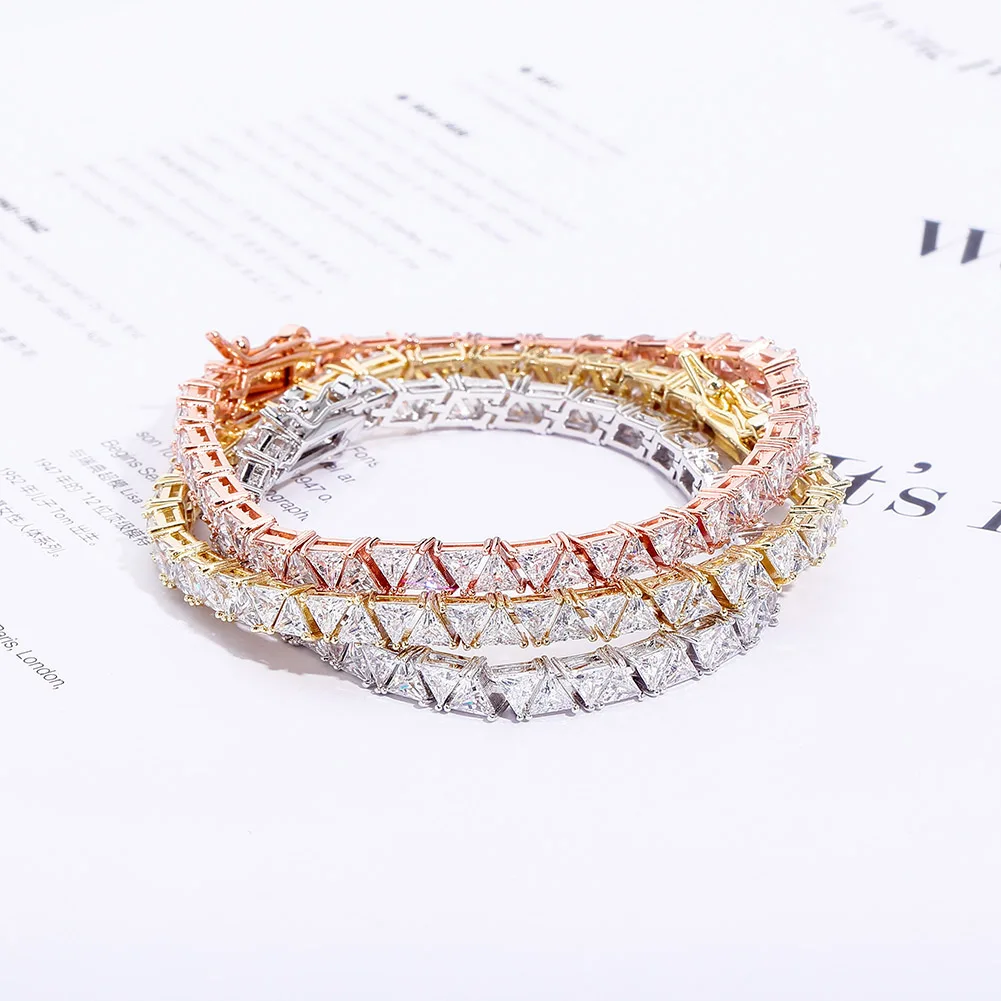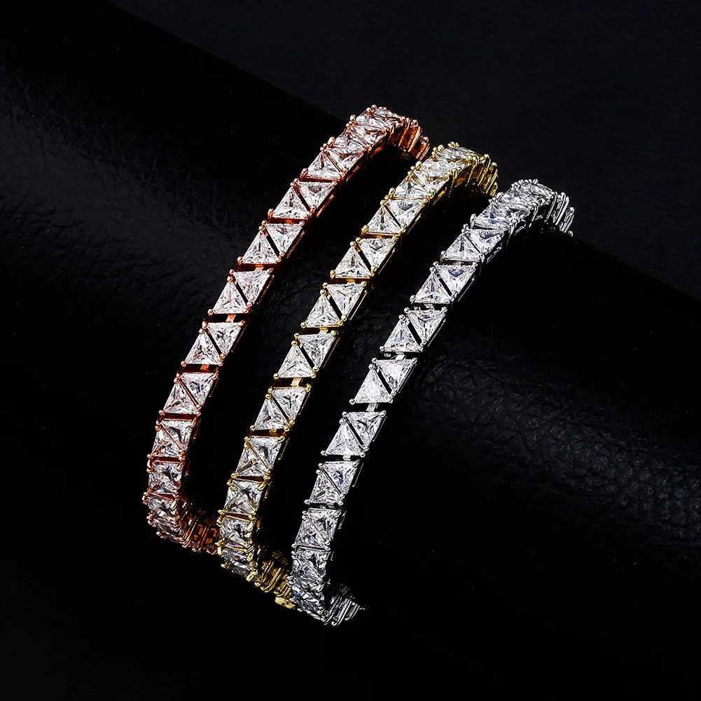 TOPGRILLZ 5mm Tennis Chain Bracelet High Quality Triangular Iced Out Cubic Zirconia Hip Hop Charm Fashion Jewelry For Women