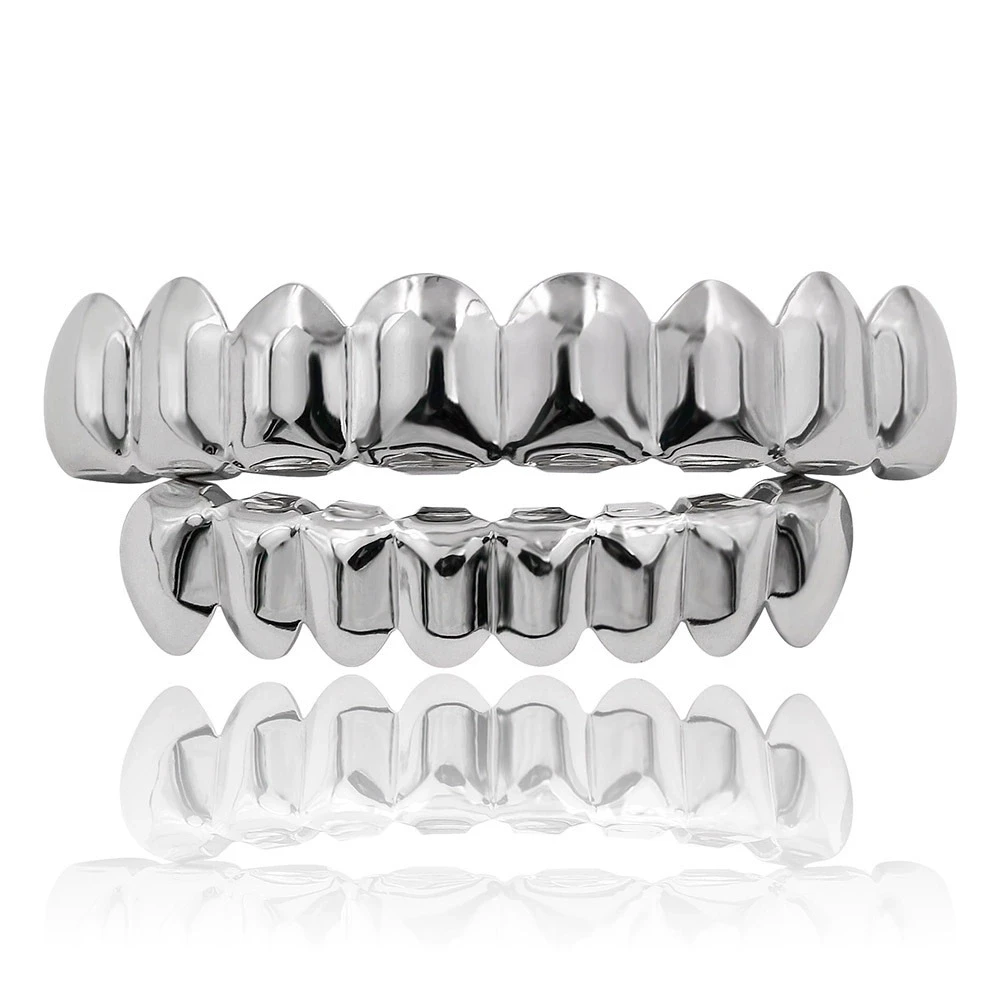 TOPGRILLZ Gold Silver Plated HIP HOP Teeth Grillz Top & Bottom Grills Set With silicone Real Shiny Vampire Tooth Sets