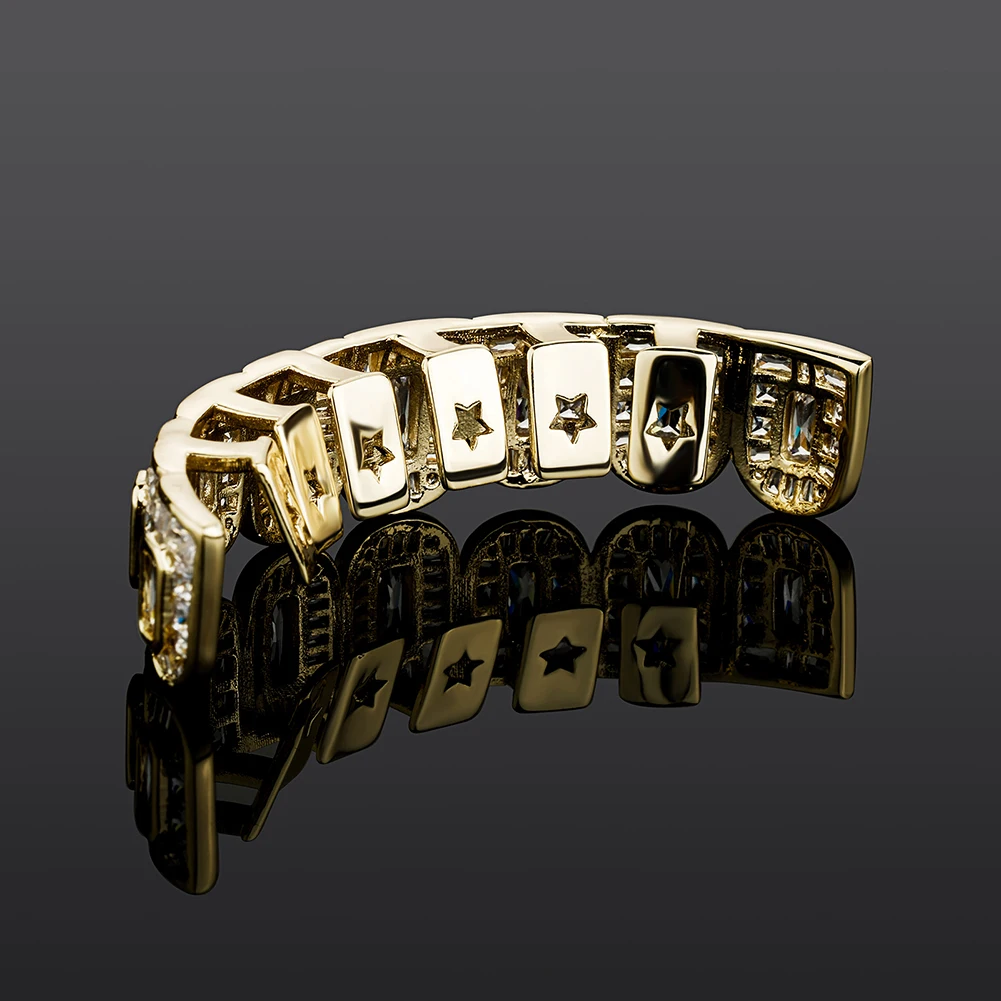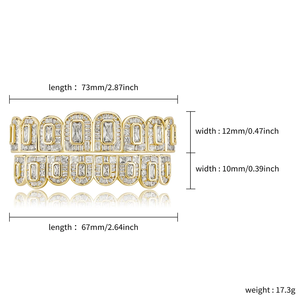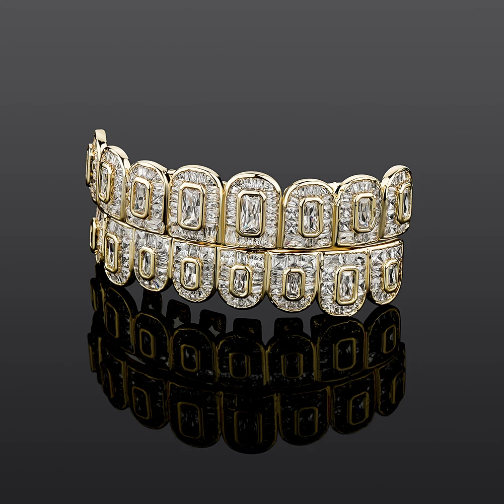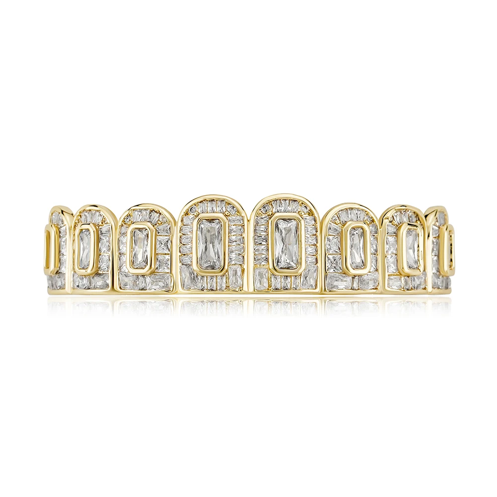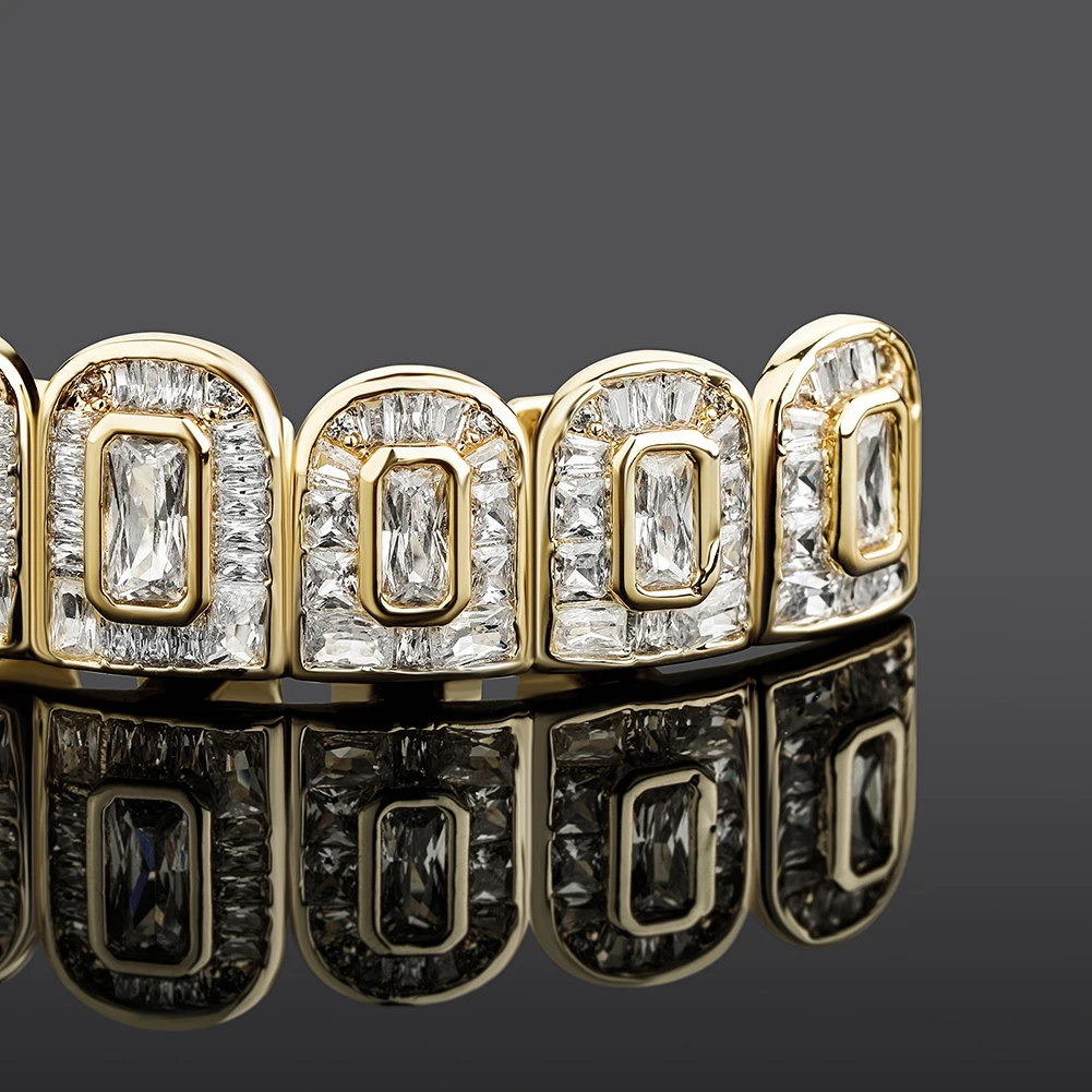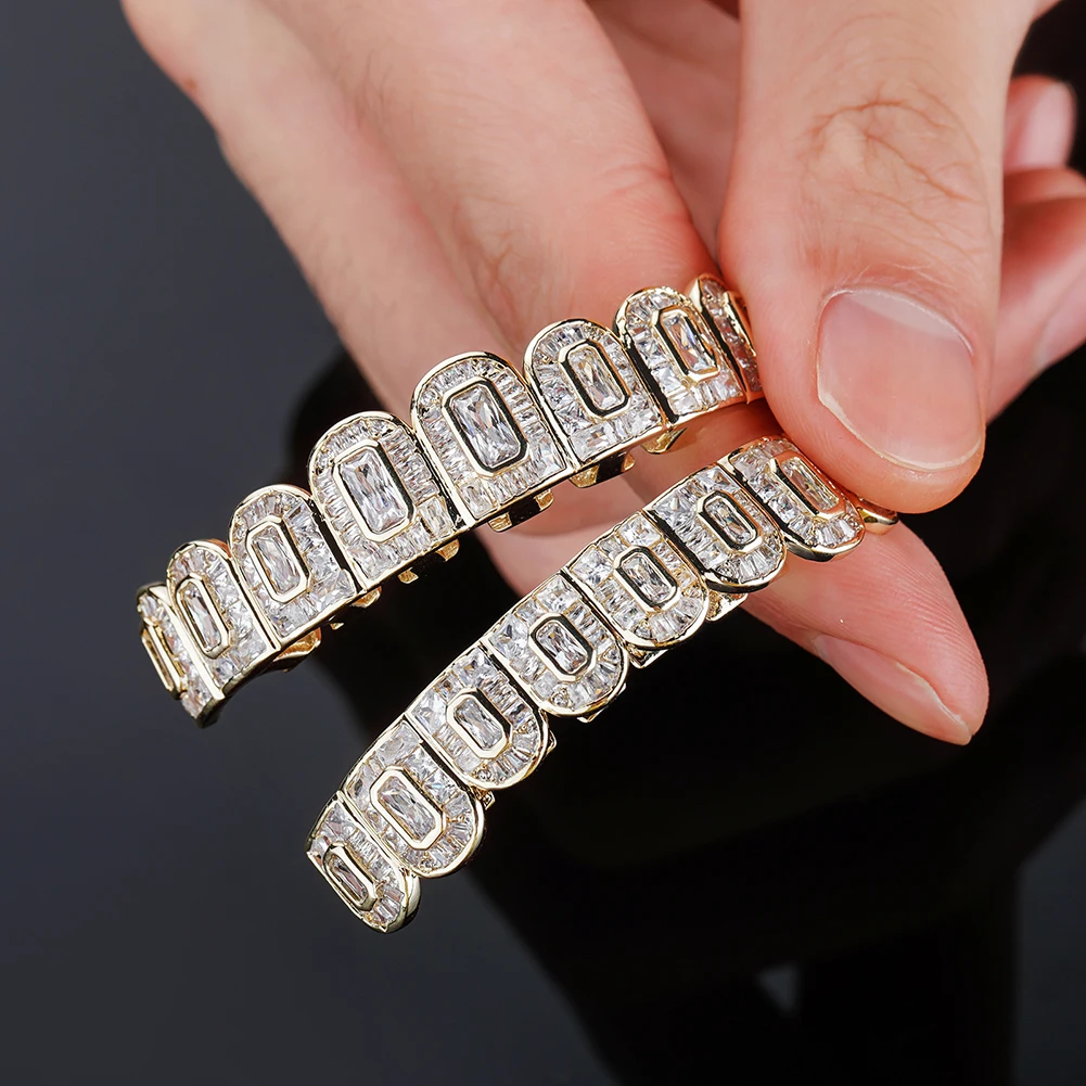 TOPGRILLZ New Baguette 8/8 Teeth Grillz Full Iced Micro Pave Cubic Zirconia Dental Grills For Men Women Tooth Caps Decor Jewelry