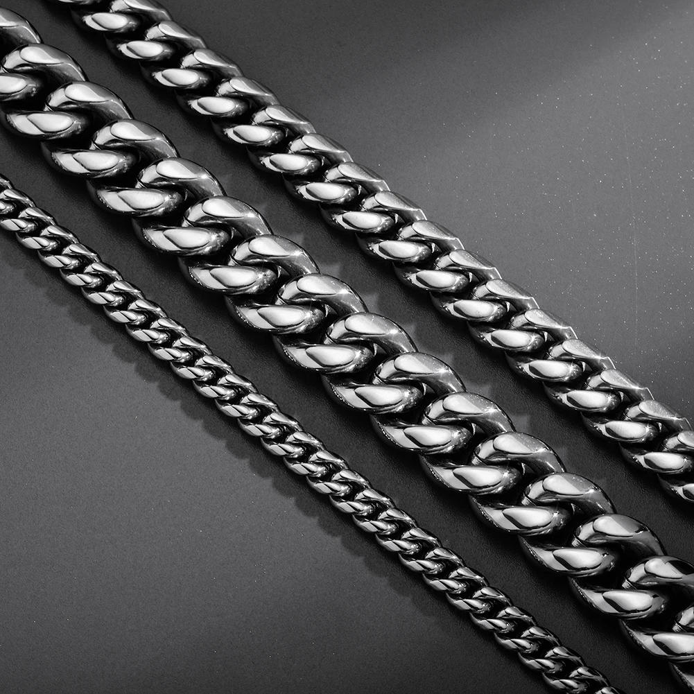 TOPGRILLZ New Jewelry Set 6/10/12/14MM Spring Clasp Stainless Steel Cuban Chain Bracelet Necklace Hip Hop Classic Mens Jewelry